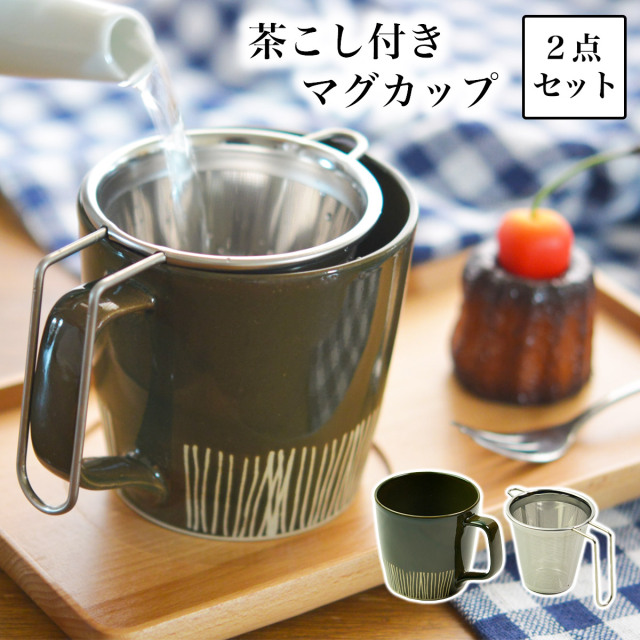 2 2波佐見焼 波佐見焼マグカップ 茶こし付き クシメ 織部 4,800円(税別) 波佐見焼のマグカップと、茶こしの中でも使いやすくて人気の高いSS茶こしのセット商品です。マグカップと茶こしは当店のオリジナルギフトボックスに入れてお届けいたします。